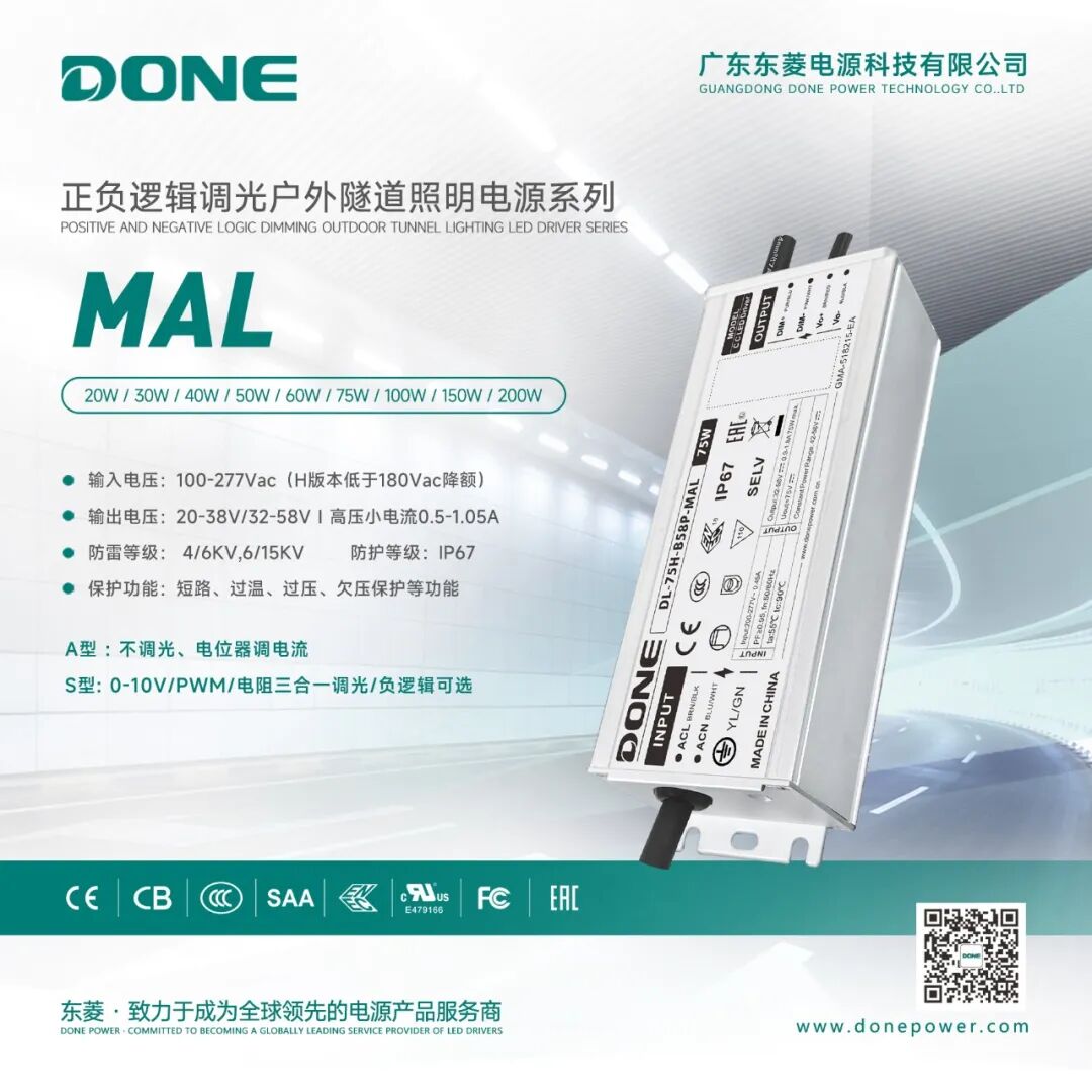 着眼于隧道空间特殊性与安全需求。采用紧凑型金属外壳设计,在有限空间内实现IP67防护等级。提供0/1-10V、0-5V及正负逻辑可选的灵活调光接口,确保了隧道照明在调光控制上的高兼容性与运行稳定性。